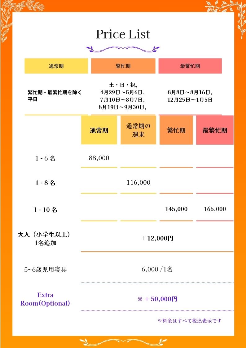 通常期、繁忙期、最繁忙期により料金が異なります。