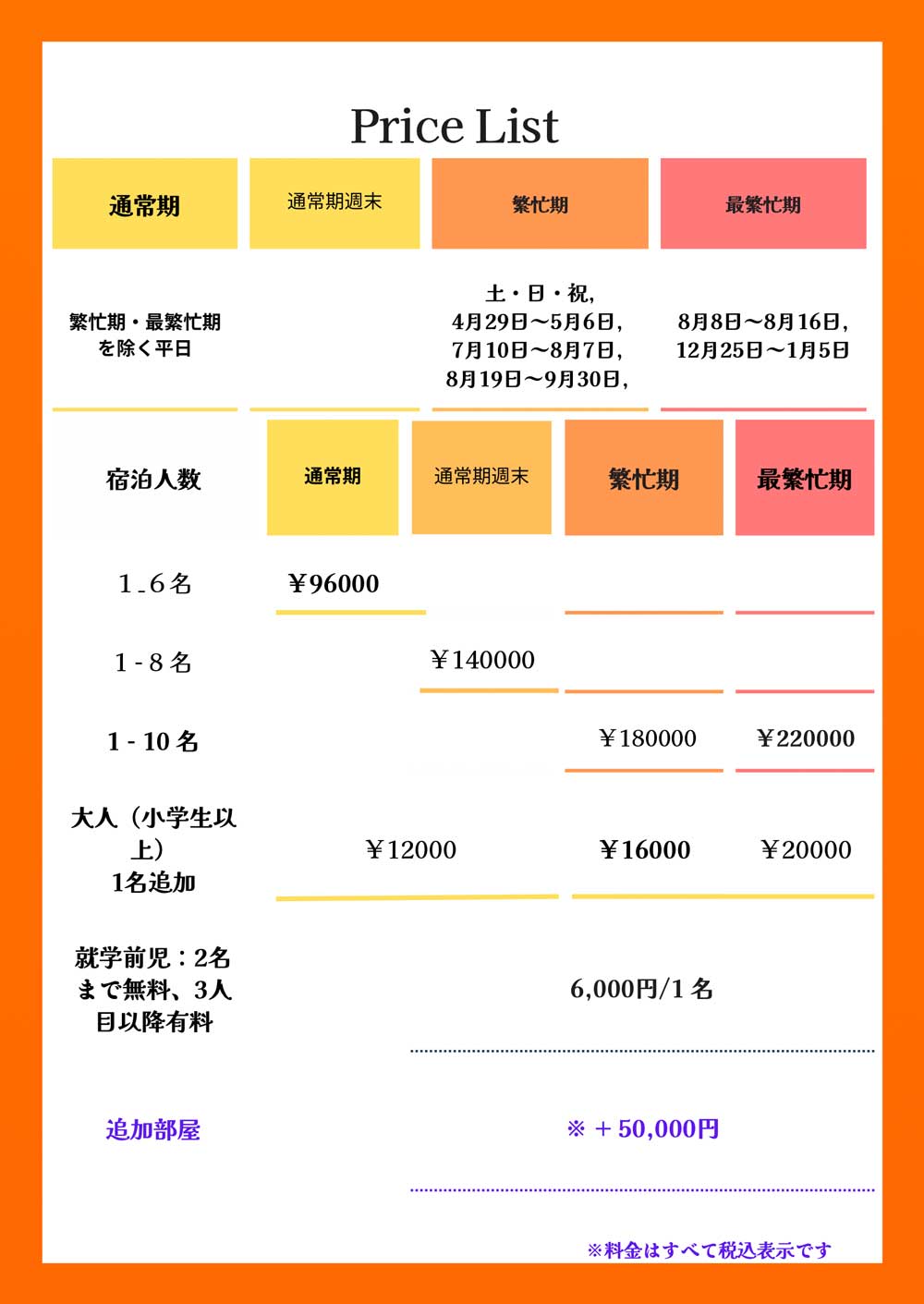 通常期、繁忙期、最繁忙期により料金が異なります。